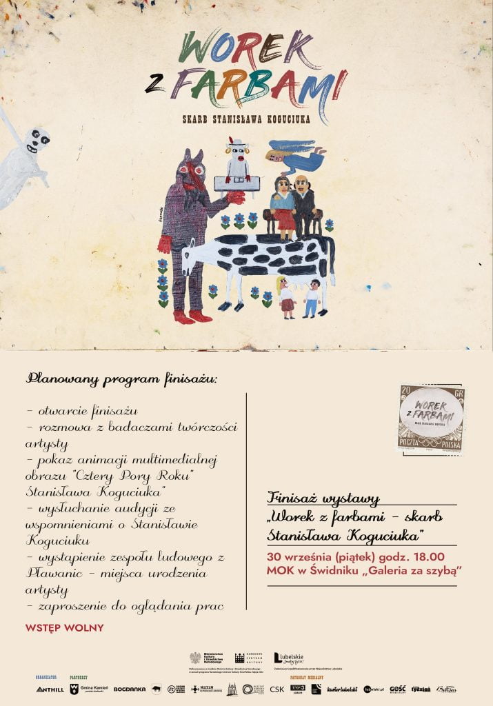 Serdecznie zapraszamy na finisaż wystawy „Worek z farbami – skarb Stanisława Koguciuka”, który odbędzie się w najbliższy piątek 30 września o godzinie 18.00.