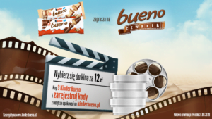 Udany czwartek to Bueno czwartek! Kup 3 Kinder Bueno, zarejestruj kody z wnętrza opakowań na www.kinderbueno.pl i wybierz się do kina na dowolnie wybrany film 2D lub 3D za 12 zł.
