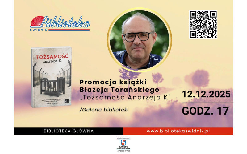 Biblioteka główna zaprasza na promocję książki Błażeja Torańskiego „Tożsamość Andrzeja K.” – poruszającej opowieści o człowieku poszukującym odpowiedzi na pytanie, kim jest, naznaczonym wojenną traumą i pamięcią o historii.